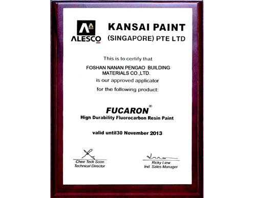 • 氟碳漆頒發(fā)證書
